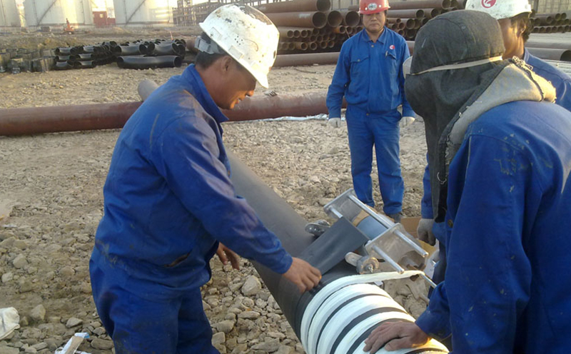 3、底漆涂刷5-10分鐘表干后即可纏帶。施工過(guò)程中要增大厚膠型聚乙烯膠粘帶的平衡漲力,達(dá)到緊貼于作業(yè)面,實(shí)現(xiàn)包平無(wú)空隙、無(wú)皺折效果。